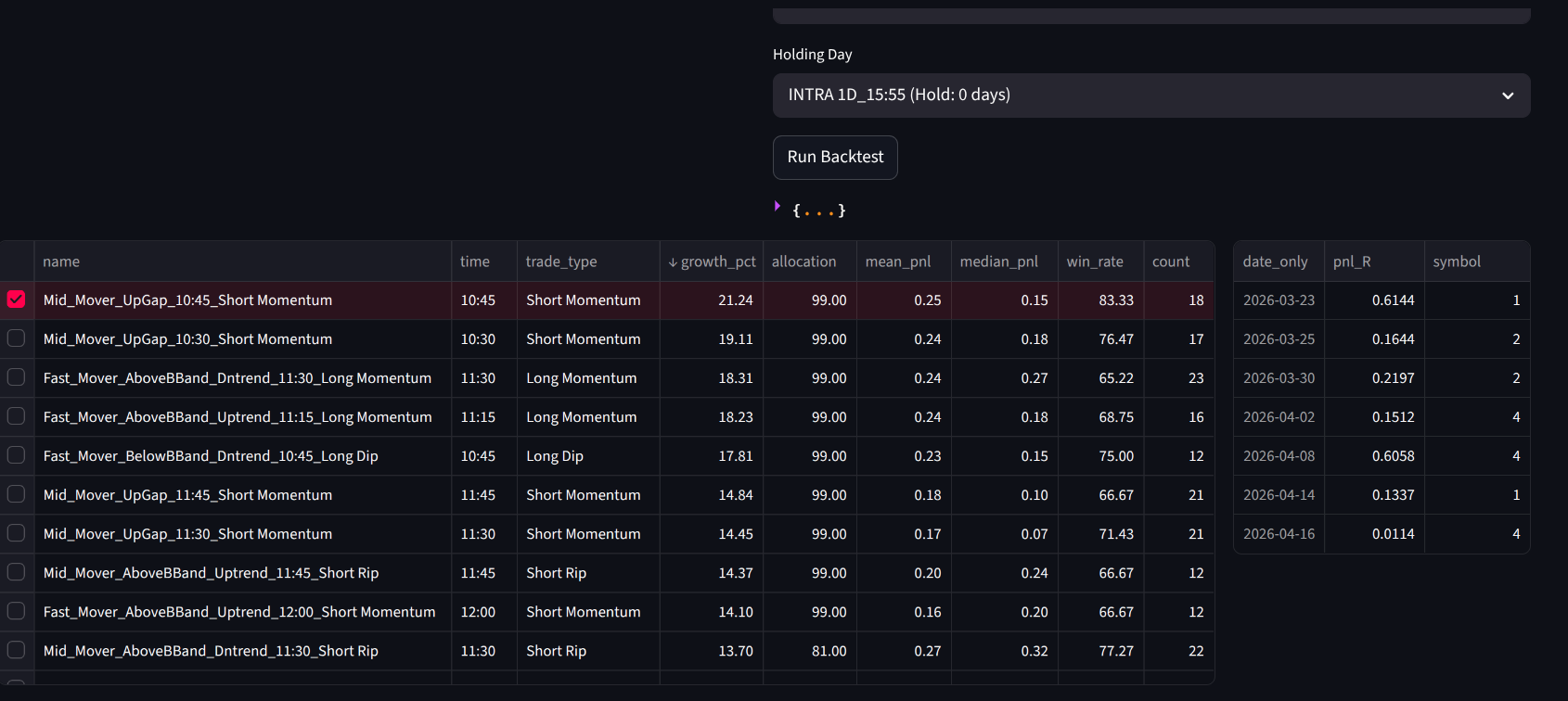 หัวใจของ Edge Finder คือ เพิ่ม Discovery Speed โดยมีชุด "Pre-made Strategies" ที่ผมคัดเลือกมาแล้วว่าเรียบง่ายและไม่ซับซ้อนจนเกินไป เพื่อลดโอกาส Overfitting ระบบจะรัน Backtest ทุกกลยุทธ์พร้อมกันในคราวเดียว โดยจำกัดจำนวนเทรดในแต่ละวันเพื่อลด Sample Bias